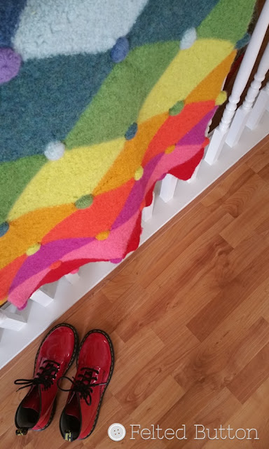 Why do I love felting so much? Read THIS POST about the 6 reasons I think it is so fabulous. And this felted rug has it all--durable, brilliant color, easy care, hides any stitch mistakes or imperfections, and best of all...